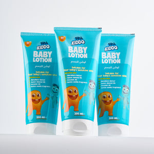 لوشن الجسم من فريش كيدو غني بتركيبة طبيعية وآمنة على الأطفال، التي تحمي جسم طفلك من أي جفاف.